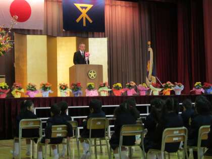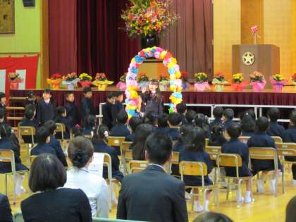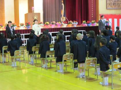 入学式では、一人ずつ名前を呼ばれると、元気よく「はい!」と返事をして着席しました。校長先生や都PTA会長のお話、2年生の歓迎の演技をしっかり聞く態度は、とても立派でした。