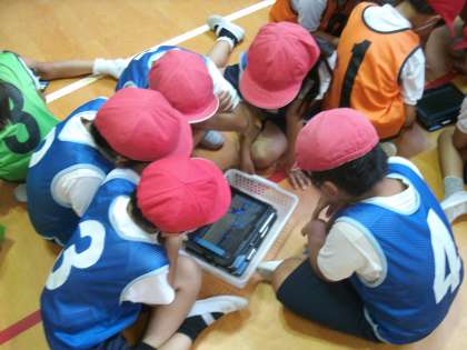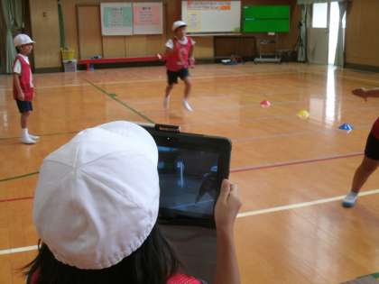 バトンパスが上手にできるように、タブレットで動画を撮って