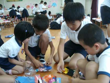 その競技で使う『金魚』を幼稚園児と一緒に作りました。
