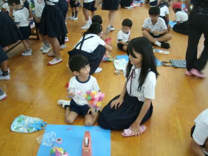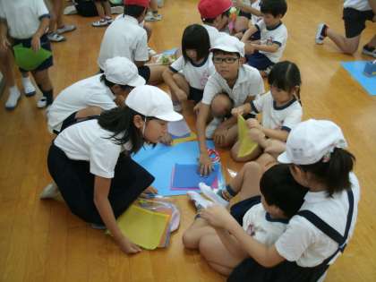 4年生は、運動会で中大江幼稚園5歳児といっしょに競技をします。