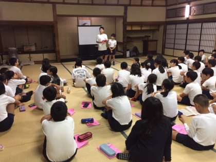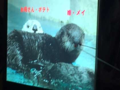 鳥羽水族館からの出前授業を受けています。ラッコやアシカについて学びました。最初の問いは「黒色と白色のラッコがいます。理由は性別?大人と子供?どちらでしょう?」でした。答えはお子さんから聞いてください。