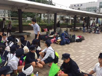 鳥羽駅到着。宿舎の方が大きい荷物を運んでくれています