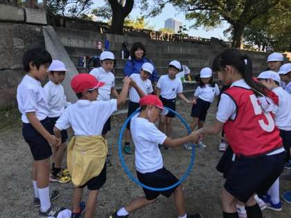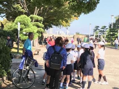 にこにこ班で協力しながらポイントを回っています。