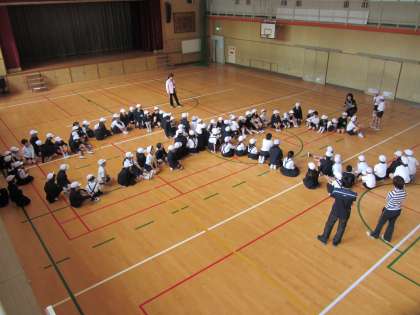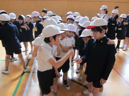 今日の児童集会は、3・5年生のペア学年集会でした。5年生の進行でジャンケン列車を楽しみました。木下先生のピアノの合図で、ジャンケンをしたり、列が反対向きになったり、ジェンカを踊ったり…。(1・2枚目)