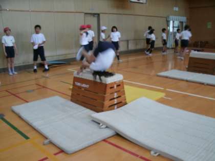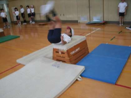 回る感覚や、跳び箱の上から下りる感覚が楽しくて、