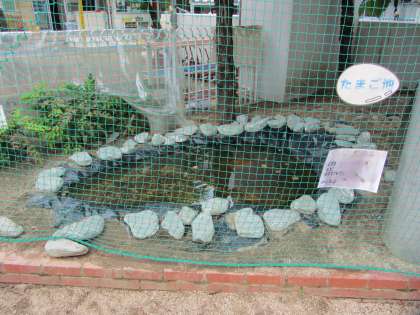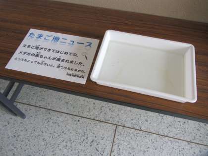 昨年度、飼育・栽培委員会が作った人工池「たまご池(子どもたちが命名)」で、初めてのメダカの赤ちゃんが生まれました。3枚目の写真に2匹写っています。見つけられるかな?