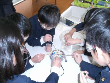 科学クラブでは、楽しみながら実験をしています。