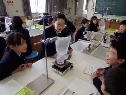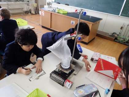 理科で「水をあたためるとどうなるか」の実験をしました。
