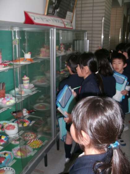 2年生が図画工作かで作った紙粘土の作品を集めて