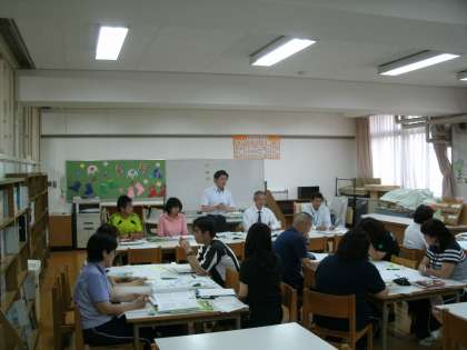 放課後、片江小学校の中澤校長先生を講師に招き、本日の授業についての充実した研究会を行いました。
