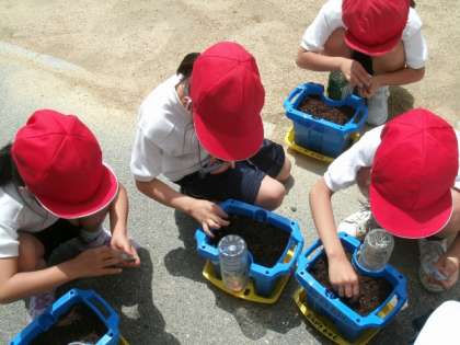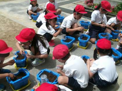 1年生はあさがおのたねをまきました。