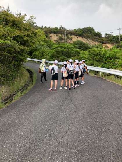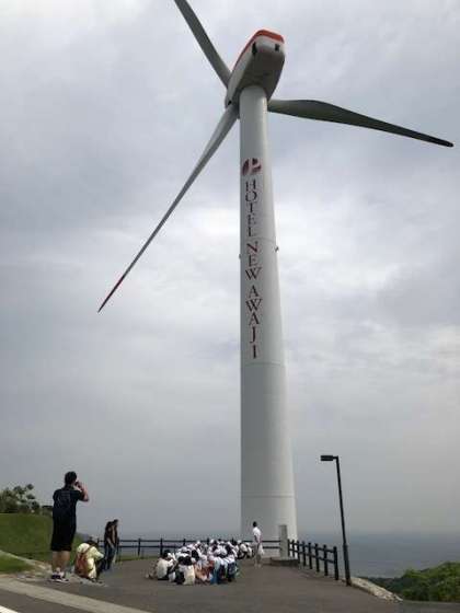 全班ハイキングゴールしました。風力発電の大きさを体感できました。