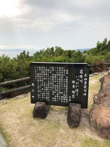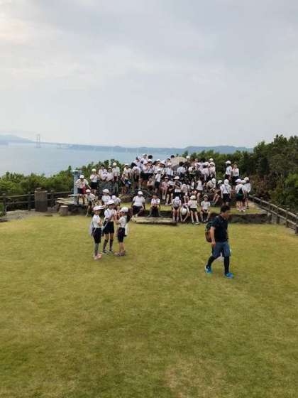 鳴門海峡大橋の見える展望台で記念撮影。程よく曇り、過ごしやすいです。