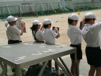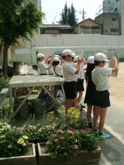 理科では空気・水・土の一日の温度の変化を調べています。