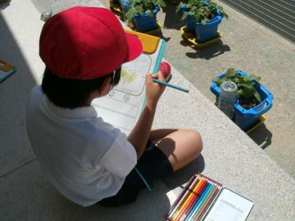 1年生は、毎日あさがおの水やりをしています。