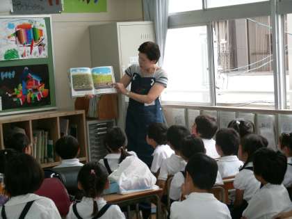 今日は「スマイルの日」。本校では何年も前から、始業前の10分程度、校区内の保護者や地域の有志による図書館ポランティア「スマイル」さんから、絵本の読み聞かせを全学級で実施していただいています。その日が「スマイルの日」として定着し、子どもたちも「今日はどんなお話が聞けるのだろうな」と言いながら、毎回ボランティアの皆さんが来るのを楽しみにしています。そのお陰で、本校の子どもたちは読書が大好きな子が多く、児童の図書委員会による図書館の開放も進んで行っています。