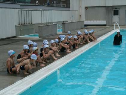今日はプール開き。気温、水温とも25度で薄曇りの肌寒い朝でしたが、子どもたちは少し震えながらも水に飛び込んだとたん、「キャー!」「冷たい!」「もっと泳ぎたーい!}と大喜びでした。