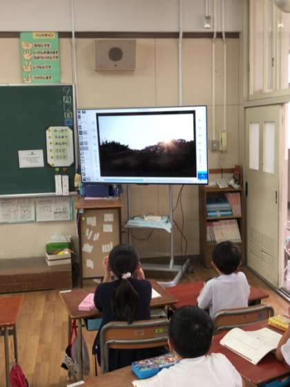 言い伝えられているお話を知ろうという学習です。だいだらぼう という水戸の昔話の情景を見て、場面を想像しています。