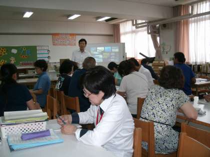 5時間目、大阪市教育委員会から委嘱を受けた「理科教育推進モデル校事業」の研究活動の一環として、2年1組の「サイエンスタイム」の授業公開と研修会を行いました。