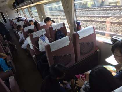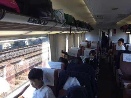 お喋りに花を咲かす子、今後の予定をチェックする子、みんなそれぞれに電車の時間を楽しんでいる様子です。