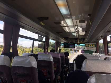 志摩磯部からシャトルバスで志摩スペイン村に向かいます。みんなお行儀よく乗車しています。