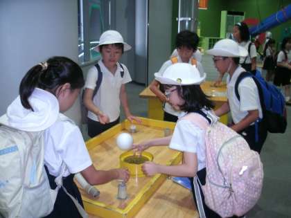 現地に着くと、まず本物そっくりの天体の動きが再現できるプラネタリウムホールで天の川などの夏の星空の動きを鑑賞したあと、科学館の中の展示施設やゆ体験施設を使って、身近な科学や電気の仕組みを楽しく学ぶことができました。