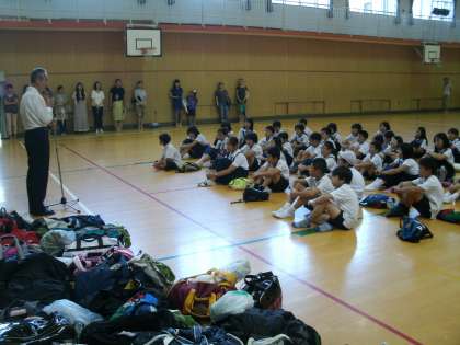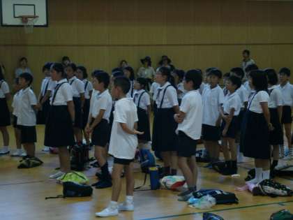 講堂での帰校式では、校長先生や引率の先生方のお話のあと、子どもたちからの提案で2学期から転校することになった2名の友だちの別れの会が急きょ開かれるというサプライズもあり、心地よい疲れの中にも、笑いあり涙ありの夏休みの忘れられない思い出の一日となりました。
