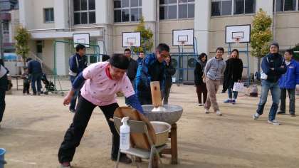 校長先生のもちつきをしました。地域のみなさん、ありがとうございました。