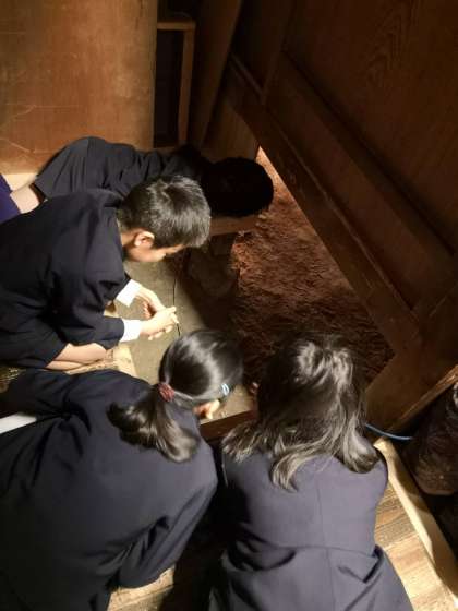 5年生が山本能楽堂の見学に行きました。舞台裏や床の下にをみせていただき、能楽師の方がふみ鳴らす音を響かせる仕組みなどを教えていただきました。