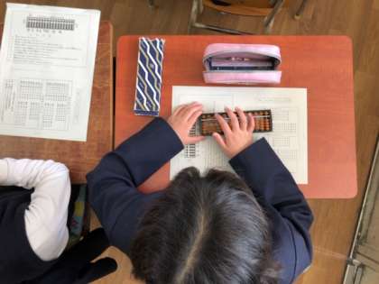そろばんの歴史や使い方を習い、かんたんな計算にもチャレンジしました。