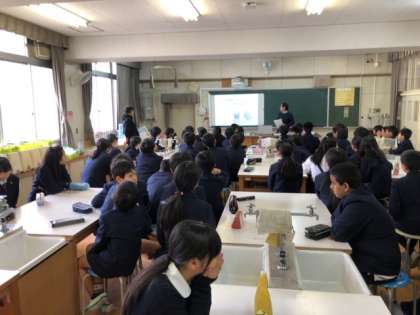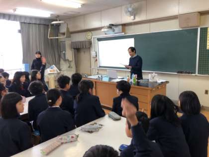 学校薬剤師の宇野先生に来ていただき、薬について教えていただきました。薬を飲むときはお茶でもいいの?など素朴な疑問にもお答えいただきました。