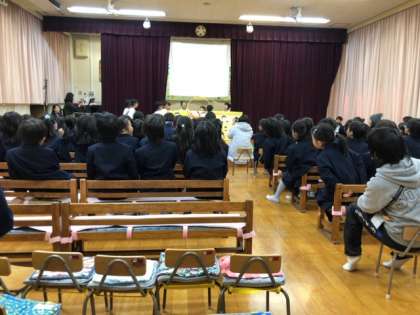 幼稚園の生活発表会を見に行きました。劇や合唱合奏を観て交流しました。