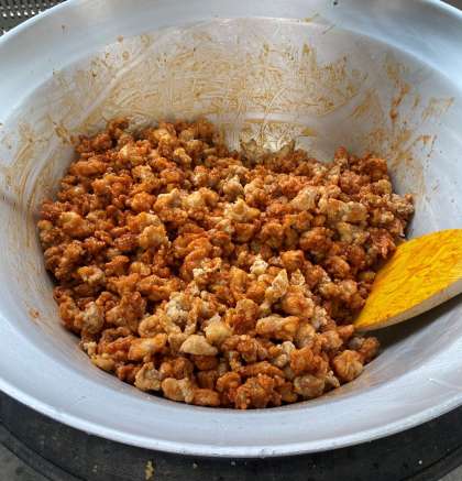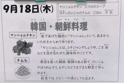 今日は韓国料理のヤンニョムチキンやナムルが出ました。