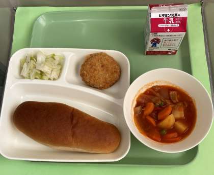 今日はチキンレバーカツに、ケチャップ煮、キャベツのバジル風味サラダでした。