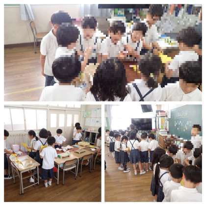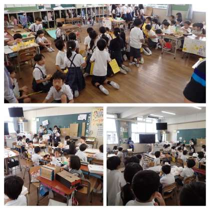 2年生が生活科の学習で作成したおもちゃを1年生に使ってもらって、楽しんでもらおうという取り組みです。