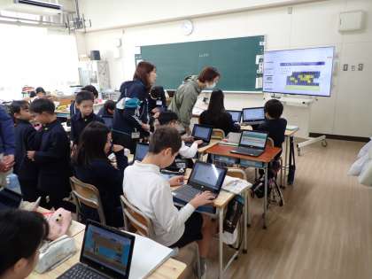真新しいタブレットを手にするだけで喜んでいる児童もいました。