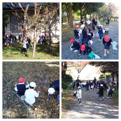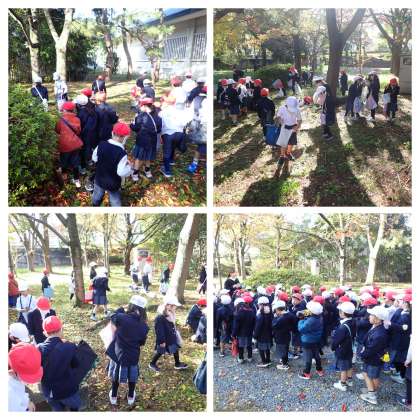 公園内の修道館付近や西の丸庭園内で葉っぱやどんぐりなどを拾いました。