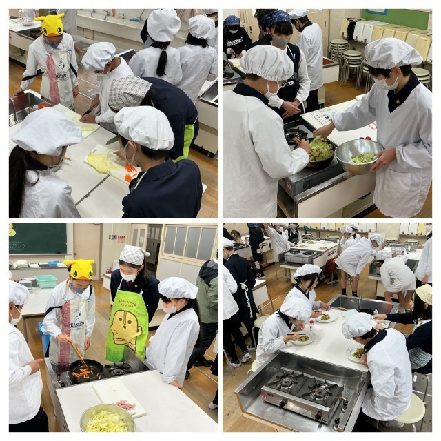 6年生は、家庭科の学習で調理実習をしました。