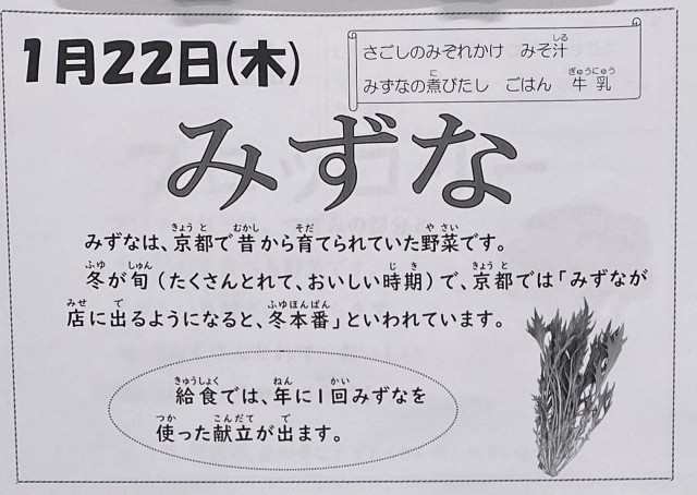みずなは京都で育てられている、冬が旬の野菜です。