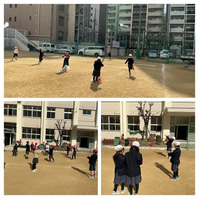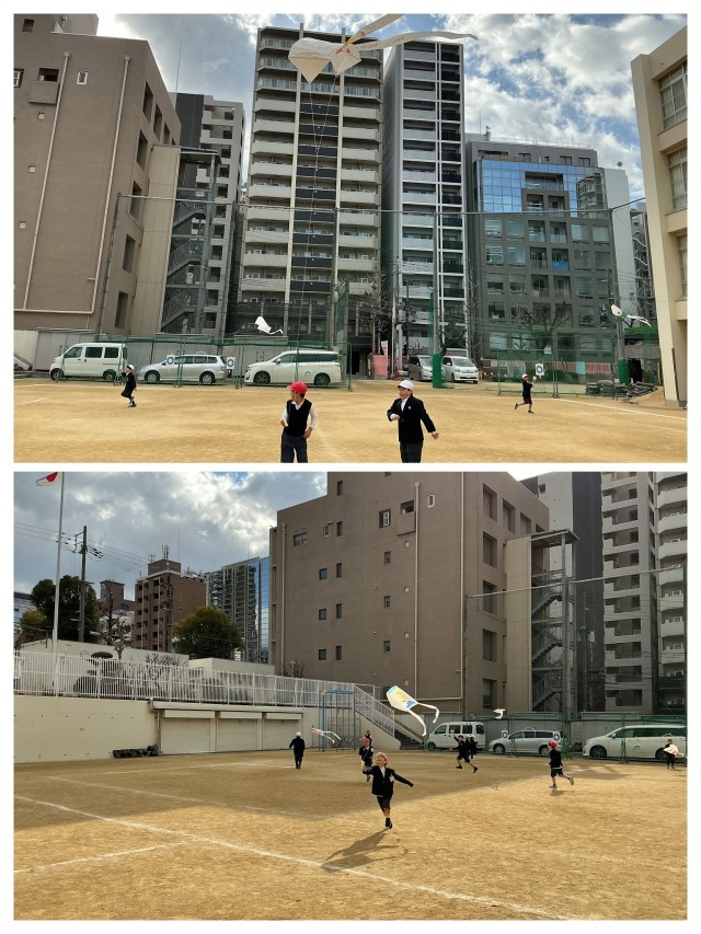 けん玉やコマなどで遊びましたが、今日は凧あげをしました。