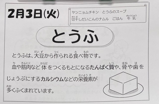 とうふは、大豆から作られる食べ物ですが、たんぱく質やカルシウムなどの栄養素が多くふくまれています。