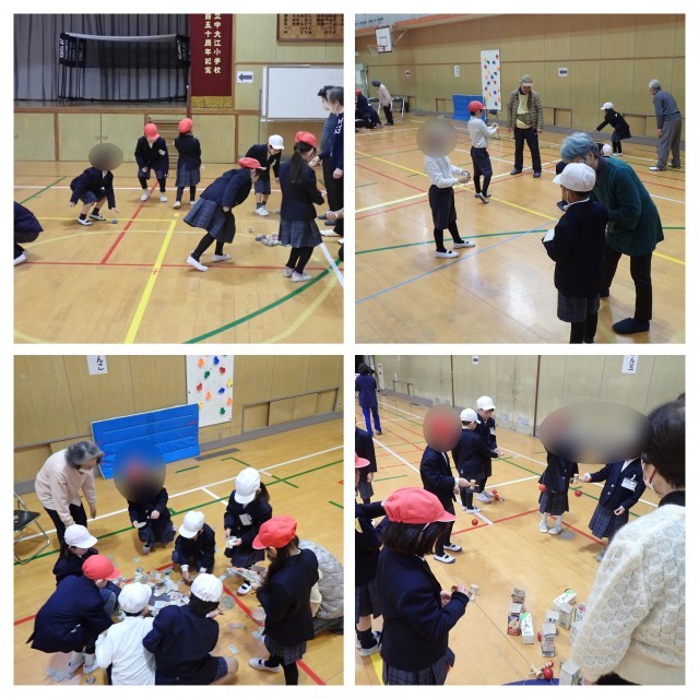 1年生は、地域の方を昔遊びの名人としてお招きし、昔あそびをしました。