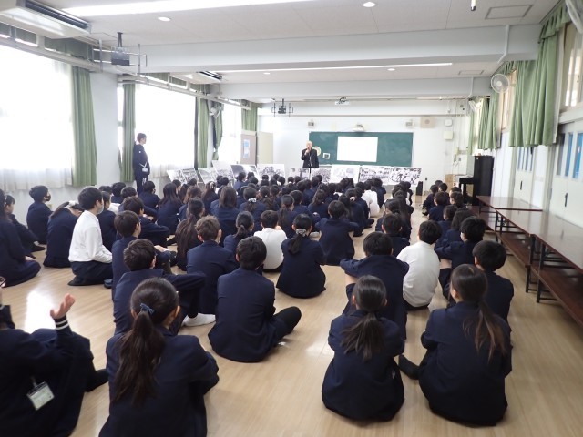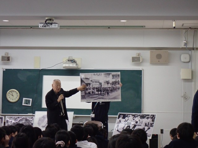 6年生は、地域の方に来ていただき、戦争時の中大江の話をしていただきました。