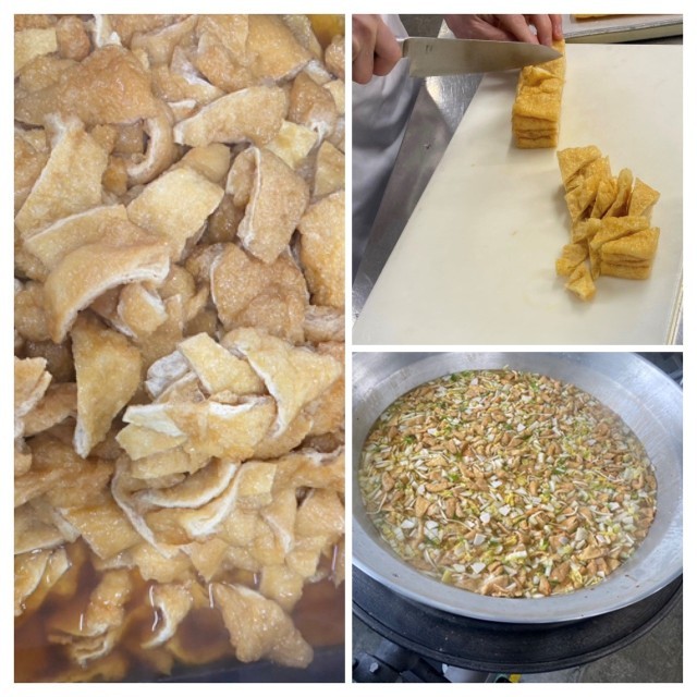 なにわうどんのあげは、16分の1の三角形に切って、甘辛く炊いています。