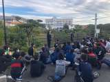 慌ただしく朝の準備が終わり退舎式です。お世話になった宿の方のお話を聞いています。