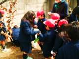 3月16日(月) 昼休み。飼育栽培員会の児童が畑に集まり、秋に植えた大阪の伝...