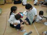 あさがおのつるがぐんぐんのびてきたので、 あさがおの支柱をたてました。 ちいさな...
