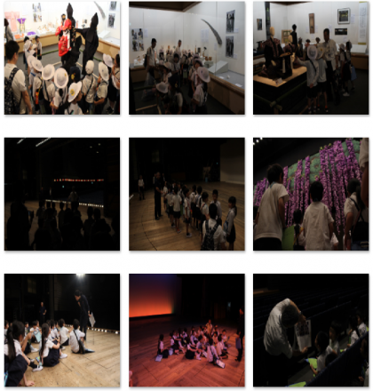 国立文楽劇場では、実際に使う道具を間近に見たり、舞台にあがらせていただいたりしました。