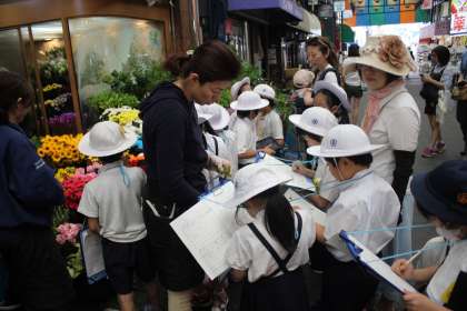 2年生が三回目の町たんけんで、黒門市場に行きました。そこで、三都屋(お菓子屋さん)、石橋食品(お総菜屋さん)、花とみ(花屋さん)、を見学させていただきました。大変混雑した中で、子どもたちのインタビューに笑顔でこたえていただきました。大変有意義な時間を過ごすことができました。