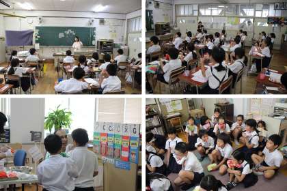 4年生はまず歯の仕組みについて学習し、フッ素がどのような働きをしているのかを学習しました。